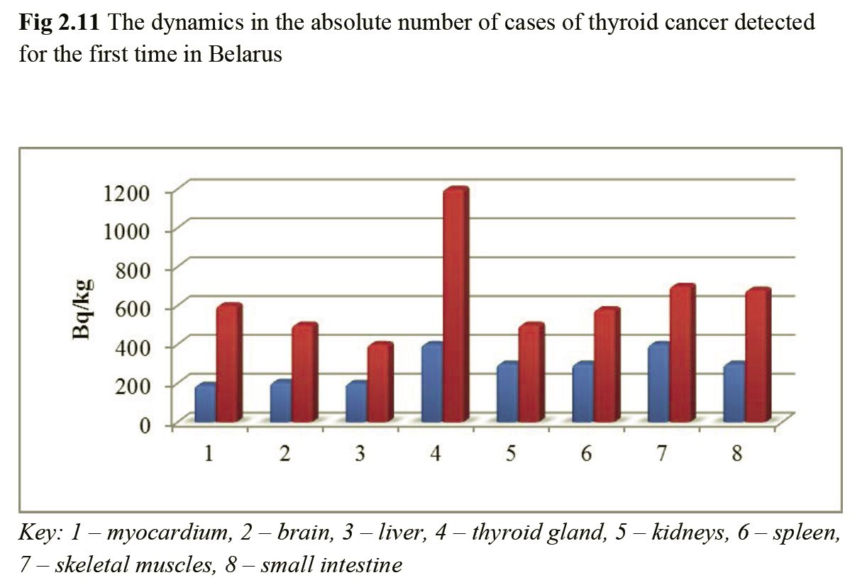 Fig 2.11 The dynamics in the absolute number of cases of thyroid cancer detected